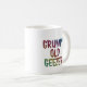 Bright multicolored lettering made to appear slightly 3-D, GRUMPY OLD GEEZER. Design is repeated on both sides of cup. Shown against plain white background - you can add a background colour behind the design is you'd like.