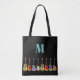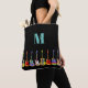 Colourful guitar pattern on black custom monogram tote bag, a perfect place to carry your music lesson books and idea for music guitar teachers and students. Fully customisable using the monogram initial template. Any guitarist or musician will tell you that you can never have too many guitars. This fun colourful guitar design celebrates the energy and variety of this wonderful musical instrument. The perfect gift for guitarists, musicians and music lovers. Psychedelic guitar pop art original artwork by artist Catherine Sweetman