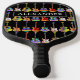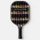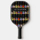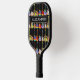 Guitar themed custom name black pickleball paddle. Colourful electric guitar, acoustic guitar and semi acoustic guitar pattern in funky psychedelic colours with monogram name. Personalise the name in modern typography by the easy to use template. Any guitarist or musician will tell you that you can never have to many guitars. This fun colourful guitar design celebrates the energy and variety of this wonderful musical instrument. The perfect gift for guitarists, musicians and music lovers. Psychedelic guitar pop art original artwork by artist Catherine Sweetman