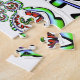 The background is white or a very light colour, providing a striking contrast that allows the colourful text and additional elements to stand out beautifully.