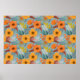 Colourful hand draw flowers seamless pattern poster