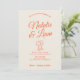 This wedding invitation is perfect for your wedding with unique design. An elegant unique simple minimalist white cream wedding template invitation. Which features plain white creamy background. And orange bold funky bride's and groom's first names under it two