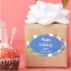 Simplify birthday gift giving with these easy to use personalised birthday stickers with a cute design in pastel blue and a colourful polka dot background.