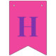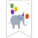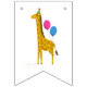 This colourful bunting flag banner reads "happy birthday" with alternating festive colours and three panels with party ready safari animals (elephant, giraffe and lion) and one custom flag with the birthday kid's name and age on it.