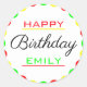 Colourful Happy Birthday Party Custom Name Classic Round Sticker