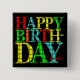 Colourful Happy Birthday Text with Black Backgroun 15 Cm Square Badge