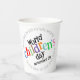 Celebrate World Children's Day with these paper cups, which feature the celebration "World Children's Day" in a colourful spectrum of playfully skewed letters, surrounded by wrapped text (the message for 2024) on the top and bottom.