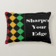 Elevate your space with this striking lumbar pillow. It features a bold harlequin diamond pattern in red, yellow, and green set against a sleek black background.