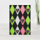 Colourful Harlequin Print with Rose Hearts Holiday Card