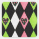 Colourful Harlequin Print with Rose Hearts Square Sticker