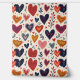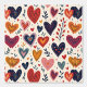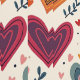 A charming pattern filled with colourful, hand-drawn hearts and delicate leaves in warm tones. The playful design, featuring overlapping hearts in various sizes and vibrant colours, brings a cheerful and romantic vibe perfect for any occasion.