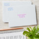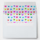 This fun and colourful envelope features colourful flirty hearts and a template with customisable typography fields for the sender's and recipients' names and addresses in blue and pink colours.