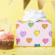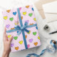 A wrapping paper with a colourful heart pattern on a light pink background. Customise the light pink background colour among other options.
