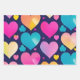 Colourful Hearts Wrapping Paper Flat Sheet Set of