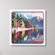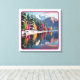 This vibrant winter scene captures a stunning mix of colourful, festively decorated trees lining a tranquil lake. Each tree, adorned in hues of pink, yellow, green, and orange, creates a magical reflection on the calm water, adding a pop of colour to the snowy landscape. Set against a backdrop of majestic mountains, this artwork beautifully contrasts winter’s serene whites with the lively colours of the holiday season, creating a joyful, enchanting view perfect for bringing warmth to winter decor.