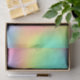 Colourful holographic style abstract pattern with neon colours in turquoise blue-green, yellow, orange, pink and pastel blue.