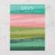 A colourful and artistic 2025 calendar featuring horizontal watercolor brushstrokes in shades of teal, pink, and green.