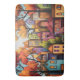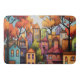 A scene of cute houses nestled amidst a tapestry of foliage, ablaze in hues of orange, blue and bronze. The terraced cityscape cascades with a sense of quaint charm, each building adorned with its own unique character.