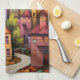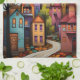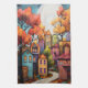 A scene of cute houses nestled amidst a tapestry of foliage, ablaze in hues of orange, blue and bronze. The terraced cityscape cascades with a sense of quaint charm, each building adorned with its own unique character.