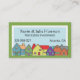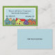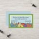 House themed business card with cartoon like graphics of a line of colourful houses, with a blue background and green frame. Personalise all the text, front and back, for your house or land business.
