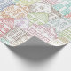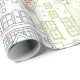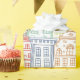 Line art style graphic of various colourful houses, seamless repeat pattern