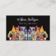 A black background decorated with colourful watercolored houses. Personalise and add your name and text on front.