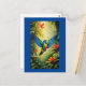 Colourful hummingbird with dazzling plumage in the Brazilian rainforest. Blue frame.