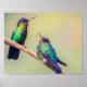 Print featuring two colourful fiery-throated hummingbirds perched together, one with its beak open and talking to the other -- Fun decor for couples and hummingbird and nature lovers. Photo taken at Paraiso Quetzal Lodge, San Gerardo de Dota, Costa Rica.