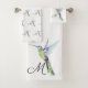 Colourful Hummingbird watercolor Monogram initial Bath Towel Set