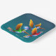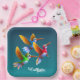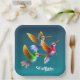 AI generated artwork of colourful, pastel-hued hummingbirds in flight on an ocean blue background. Customise with a name and/or event.