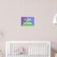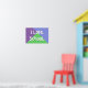 Funny and colourful poster for the kid's or teen's room. Background is vertically split into three sections that are blue, green and purple. The purple part can be recolored. There exists another colour version intended for girls.