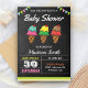 Amaze your guests with this colourful baby shower invite featuring cute ice cream cones with modern typography against a chalkboard background. Simply add your event details on this easy-to-use template to make it a one-of-a-kind invitation. Flip the card over to reveal a colourful stripes pattern on the back of the card.