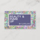 Beautiful modern and simple makeup artist business card with faux colourful shiny glimmering opaline iridescent marble look pattern and a cirsp white minimalist font. Click on 'Personalise' to find the template ready to be customised with your unique business name, profession and contact information, and text of your choice. This particular strong design was made for those who like simple but sophisticated classic designs.