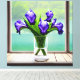 Colourful Iris Glass Vase by Window Canvas Print features a stunning digitally painted work of art, perfect for any room of your home or office. Rest assured this work is an original concept and one of a kind. Brighten any room effortlessly with our beautiful bouquet arrangement prints.