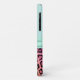 Fashionable iPhone 11 case done in mint, on the top and a colourful spotted jaguar print, on the bottom. Graphics of a mint ribbon and bow, with a diamond accent, decorates the middle, of the case. Personalise the black text for yourself or as a purrfect gift idea.