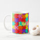 For the puzzle lover! Colourful red, purple, orange, yellow, turquoise, pink, and green puzzle game pieces. Solve the puzzle with this stylish mug photo design. Edit the text, font, size, and colour easily with provided filliable template.