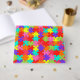 For the puzzle lover! Colourful red, purple, orange, yellow, turquoise, pink, and green puzzle game pieces.