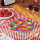 For the puzzle lover! Colourful red, purple, orange, yellow, turquoise, pink, and green puzzle game pieces.