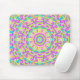 A mouse pad with a colourful high resolution kaleidoscopic design.