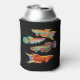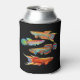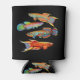 Original fine art design of colourful Killifish by artist Carolyn Mcfann of Two Purring Cats Studio printed on a quality beverage can cooler for tropical aquarium fish fans.