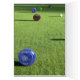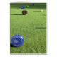 Featured on the green are Lawn bowls of different colours.
