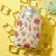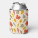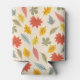 This design displays a charming and vibrant fall-themed pattern featuring a variety of colourful leaves. The background is a soft beige, allowing the leaves to stand out in hues of red, yellow, orange, green, and pale blue. The leaves are arranged in a playful and scattered manner, with each leaf type showing distinct shapes and veins, representing various species of trees. The overall design is lively and whimsical, capturing the essence of the autumn season with a touch of warmth and cheerfulness.