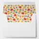 This design displays a charming and vibrant fall-themed pattern featuring a variety of colourful leaves. The background is a soft beige, allowing the leaves to stand out in hues of red, yellow, orange, green, and pale blue. The leaves are arranged in a playful and scattered manner, with each leaf type showing distinct shapes and veins, representing various species of trees. The overall design is lively and whimsical, capturing the essence of the autumn season with a touch of warmth and cheerfulness.