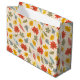 This design displays a charming and vibrant fall-themed pattern featuring a variety of colourful leaves. The background is a soft beige, allowing the leaves to stand out in hues of red, yellow, orange, green, and pale blue. The leaves are arranged in a playful and scattered manner, with each leaf type showing distinct shapes and veins, representing various species of trees. The overall design is lively and whimsical, capturing the essence of the autumn season with a touch of warmth and cheerfulness.