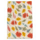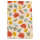 This design displays a charming and vibrant fall-themed pattern featuring a variety of colourful leaves. The background is a soft beige, allowing the leaves to stand out in hues of red, yellow, orange, green, and pale blue. The leaves are arranged in a playful and scattered manner, with each leaf type showing distinct shapes and veins, representing various species of trees. The overall design is lively and whimsical, capturing the essence of the autumn season with a touch of warmth and cheerfulness.