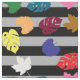 Colourful Leaves On Grey Ash Black Stripes Design Fabric
