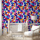 This bold and colourful wallpaper showcases a vibrant leaf pattern, perfect for maximalist decor. Featuring a dynamic arrangement of leaves in striking shades of vivid purple, deep blue, bright orange, rich pink, and golden yellow, each element pops against a crisp white background. The scattered design highlights the bold colours, creating a cheerful and energetic aesthetic. Ideal for adding a touch of personality and vibrancy, this vibrant leaf wallpaper is perfect for transforming any space into a lively and eye-catching masterpiece. generativecontent