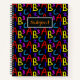 This fun design is perfect for back to school with a colourful letters ABC and numbers 123 pattern on a black background and a black banner on each side for you to add your subject and name in a cute coloured font. You can change the font and colour of the text of the subject and name placeholders.