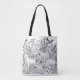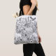 A tote bag features intricate line art with various animals and flowers. Users can enjoy colouring the design with fabric pencils, adding personal flair to their accessory. Create your own unique surf-themed bag today!
