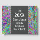 This family reunion guestbook design features a colourful pattern of lines coloured various colours, along with a customisable year and family name.